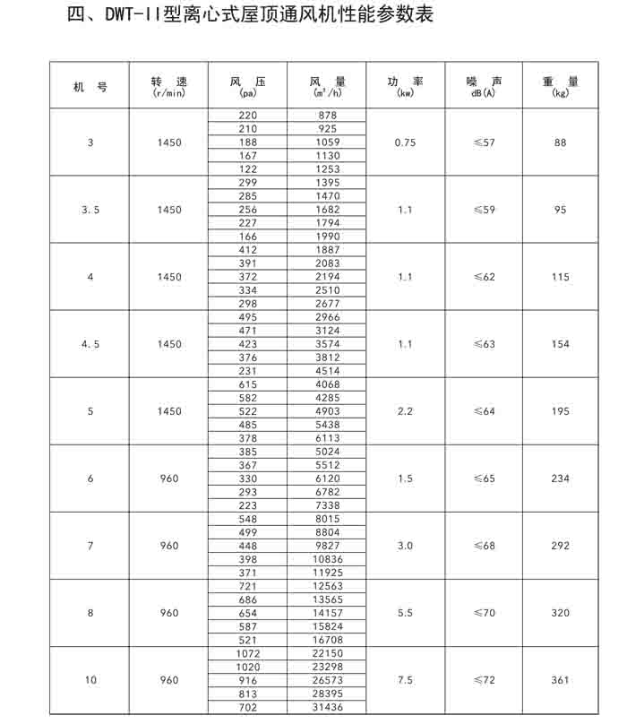 二、DWT-II、III 系列離心式屋頂風(fēng)機